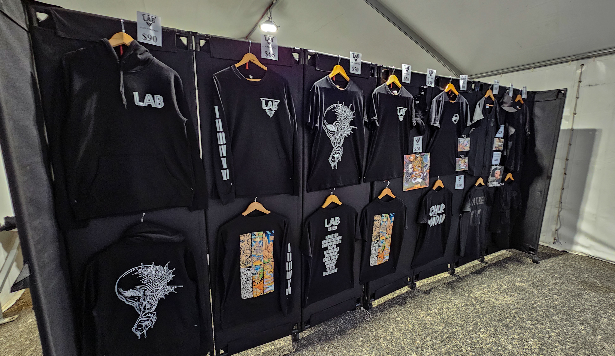 – ORGANISING MERCH STRUCTURES: MARQUEES, LIGHTING, SIGNAGE ETC